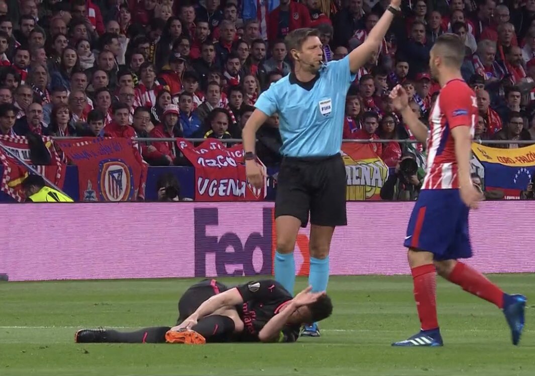 Phút thứ 12 trận Atletico Madrid – Arsenal, đội khách gặp bất lợi lớn khi Laurent Koscielny dính chấn thương trong tình huống di chuyển về phía tiền đạo Costa, song không có va chạm xảy ra.