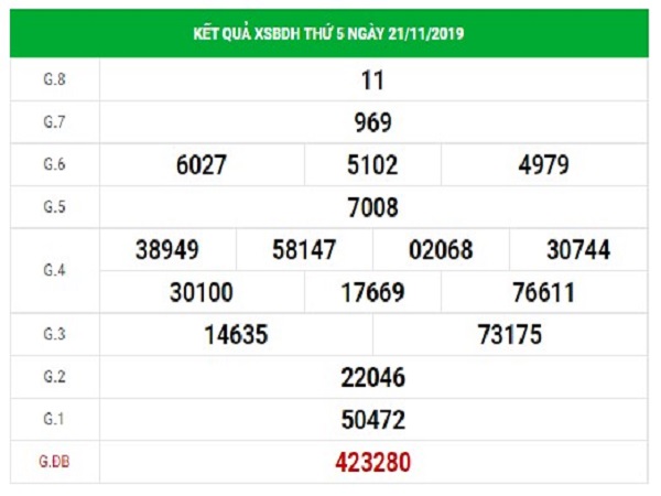 Thống kê VIP kết quả xổ số XSBDI 21/11/2019