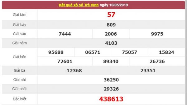 Thống kê kết quả xổ số Trà Vinh ngày 10/5/2019: