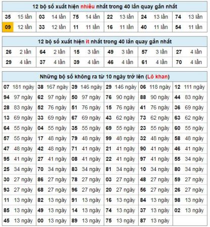 Thống kê cặp số về nhiều nhất